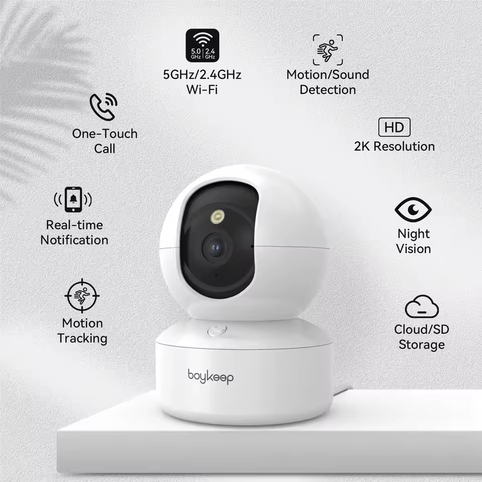 Miej na oku swoich futrzanych przyjaciół dzięki inteligentnej kamerze IP dla psów BoyKeep 3MP 5G/2,4 GHz WiFi do użytku w pomieszczeniach domowych. Rozdzielczość 3 MP zapewnia wyjątkowo wyraźny materiał filmowy, rejestrując każdy machający ogon i zabawny moment z żywymi szczegółami.